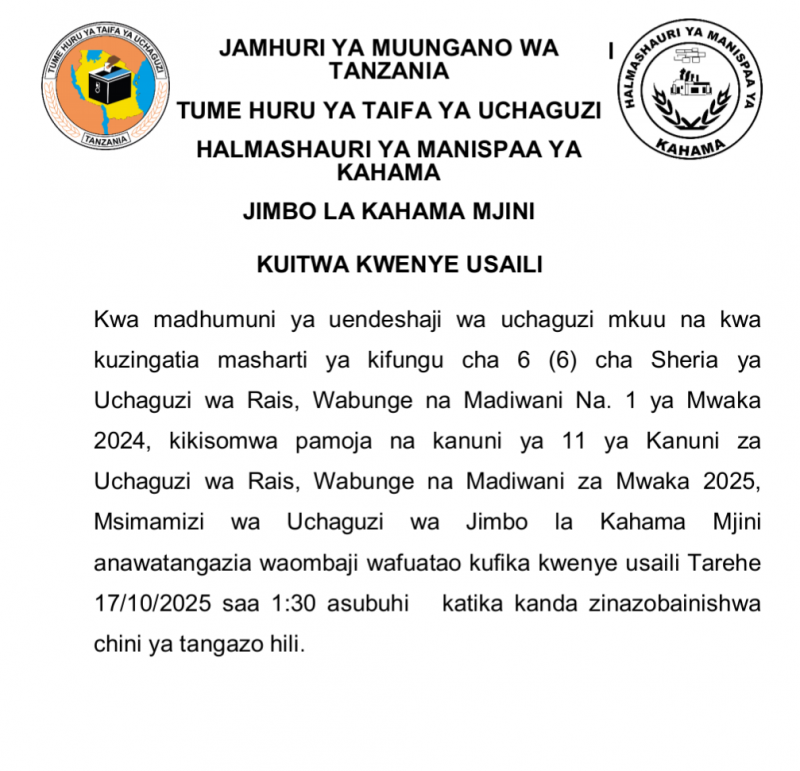 ILI KUSOMA TANGAZO LA KUITWA KWENYE USAILI TUME HURU YA TAIFA YA UCHAGUZI BONYEZA HAPA